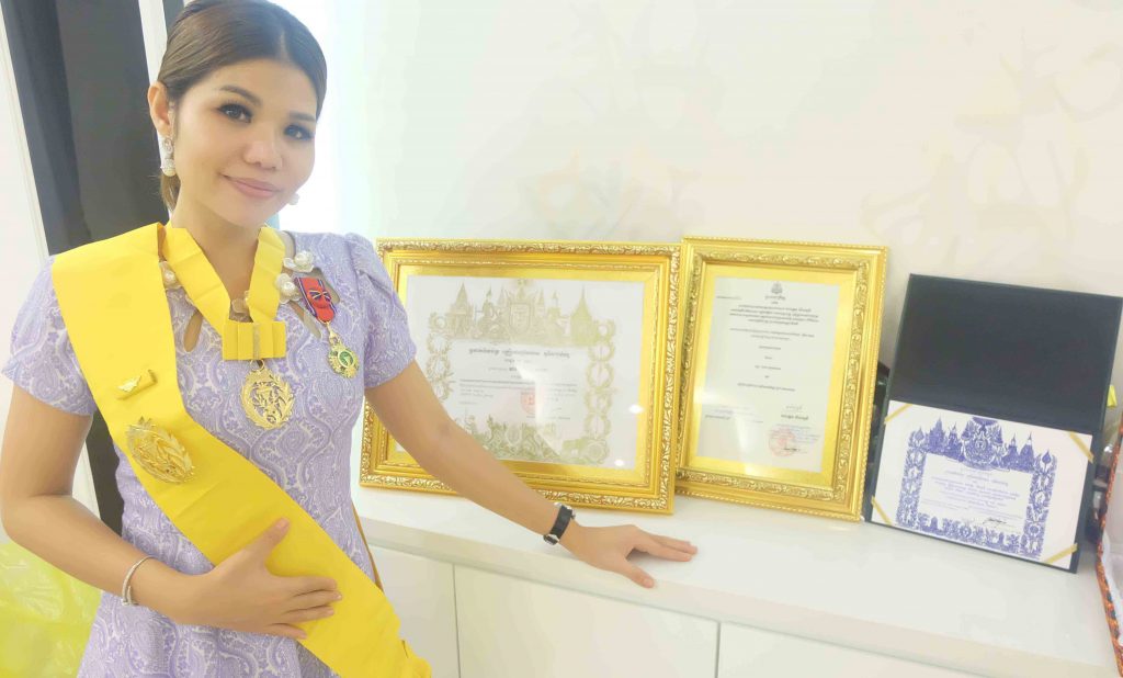 This early January our superstar, Miss. Meas Sok Sophea has received the great honor of High Dignitary level MOHASINA from The King of Cambodia, Samdech Norodom Sihamoni. Along with the greatest award, she has also received the medal from the Prime Minister of Cambodia, Samdech Hun Sen, for involmenty in the activities contributing to protect the environment, and a medal appreciation for involving in collection can-rings to build prosthetic leg. The High Dignitary she has received was not given by chance. It is a great honor as a singer who is involved with many charity work and fund raising, as well many society work. The latest society work she has involved with was collecting Leo Beer can-rings to build prosthetic leg for Cambodian handicap via CMAC. Moreover, she is also one of Cambodia’s top singer who contributes to improve art and entertainment in modern era by promoting original songs which are newly composed by Cambodian artists and gain so much popularity among audiences. Miss. Meas Sok Sophea is so excited over awards from the King and the Prime Minister. She has committed that she will try her best to serve the country and society by promoting positive activities as a great role model to Cambodians.